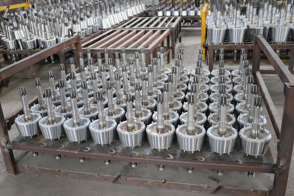 18.5KW雙速電機錐形轉子制動電機,是一種自帶剎車的定轉子成錐形的三相異步電動機。民間多用于起重設備。 YEZ錐形轉子制動電機,是一種自帶剎車的定轉子成錐形的三相異步電動機。其定子內腔和轉子外形都呈錐形的電動機。它具有停電自制動的能力,廣泛應用于電動葫蘆、卷揚機等起重設備。 錐形轉子電動機的制動裝置由套在電機轉子上的制動彈簧、風扇制動輪和端蓋上的制動環組成。電動機運行時,錐形轉子電動機的氣隙磁場產生軸向磁拉力,壓縮制動彈簧,使風扇制動輪與電機端蓋上的制動環脫開,電機能自由轉動。斷電時,軸向磁拉力消失,轉子在制動彈簧的推力下產生軸向移動,使風扇制動輪壓緊制動環,產生摩擦力,迫使電機迅速停轉并綁住轉子,以防止起吊的重物下落,保障安全。